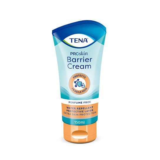 Ist die Haut außergewöhnlichen Belastungen ausgesetzt – wie beispielsweise Inkontinenz – sollte Sie bei jedem Produktwechsel eine dünne Schicht unserer sanften und transparenten TENA Barrier Cream auftragen. Die transparente Creme sorgt für eine starke, wasserabweisende Barriere und bietet somit einen zusätzlichen Schutz gegen Reizstoffe wie Urin und Stuhl.