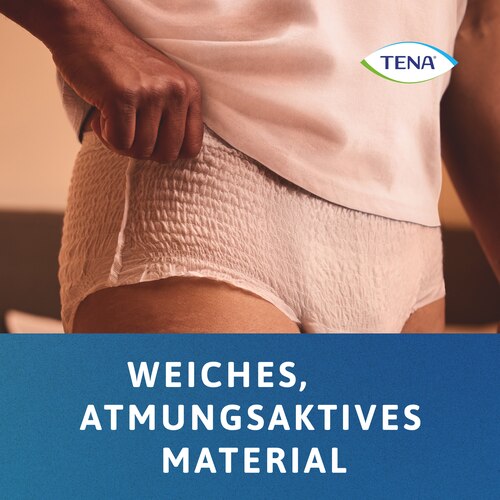 Das textilähnliche, atmungsaktive Stretch-Material bietet umfassenden Schutz im Schlaf. TENA ProSkin Pants sind dermatologisch getestet und werden von der Skin Health Alliance empfohlen. Sie sind sanft zur Haut und verringern das Risiko von Hautreizungen. So ist für deine Hautgesundheit optimal gesorgt.